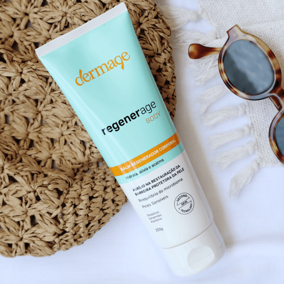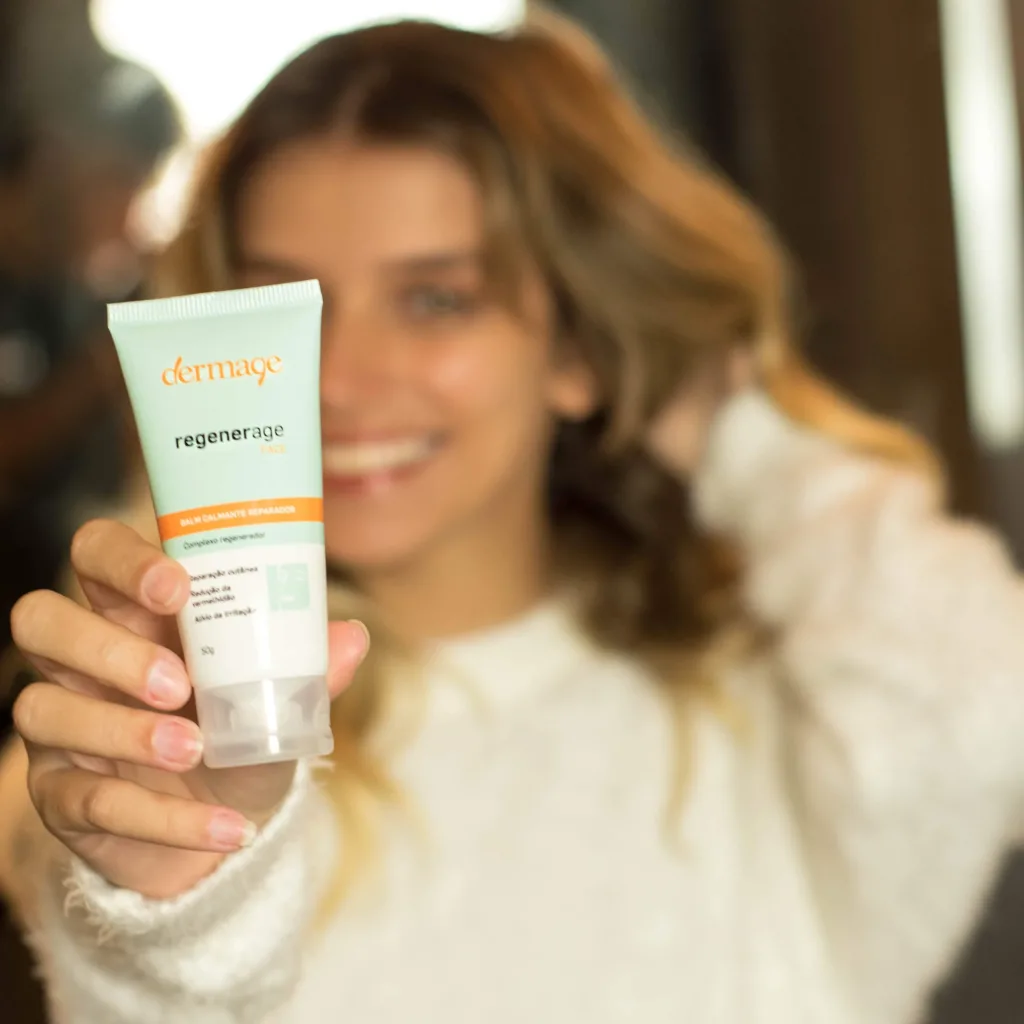 Para o rosto, a Dermage oferece o Regenerage Face, especialmente formulado para hidratar a pele sensível e sensibilizada. Com ação calmante e reparadora, ele alivia a irritação e vermelhidão causadas por rosácea, dermatite atópica e alergias. É também adequado para a pele sensibilizada após procedimentos estéticos e exposição ao sol. O Regenerage Face não só hidrata, mas também ajuda a suavizar a sensação de desconforto, promovendo uma pele mais equilibrada e saudável.